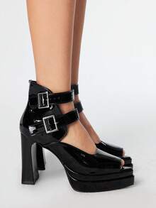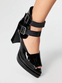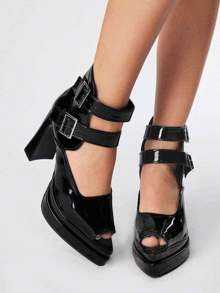 Goth صنادل نسائية ذات كعب سميك وعالي جدًا على الطراز الأوروبي والأمريكي الجديد للصيف، بتصميم داكن، منصة مقاومة للماء وحزام جذاب، مقاس كبير