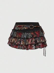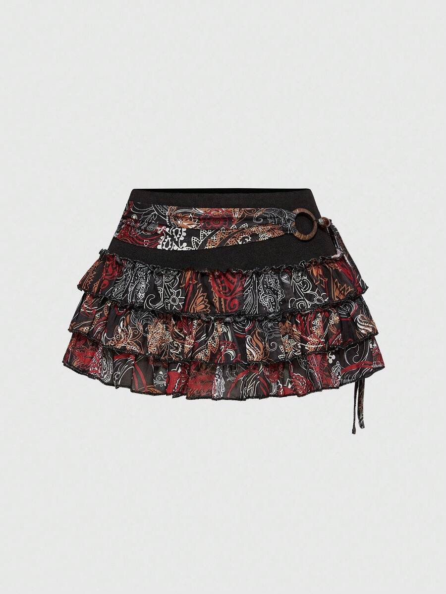 Hippie تنورة نسائية بطراز هيبي رجعي للعطلات، مزينة بطباعة البيزلي، مع خرز خشبي على الخصر وكشكشة على الهيم