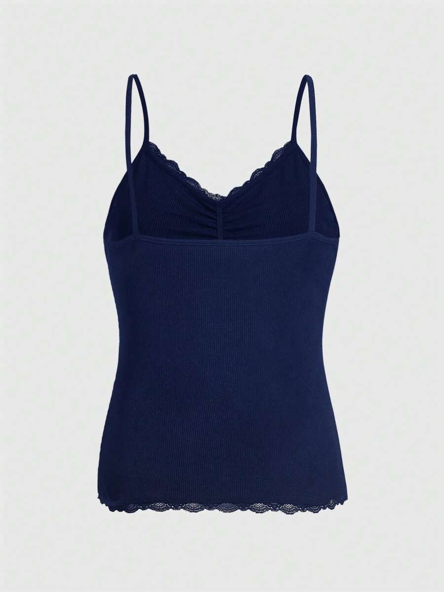 قميص نسائي بسيط بلون أحادي مطوي بالدانتيل، متعدد الاستخدامات للصيف