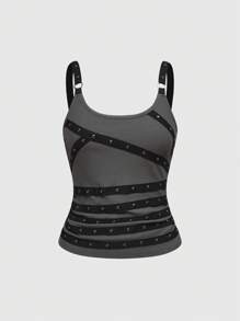 Grunge Punk بلوزة نسائية بدون أكمام وحمالات رفيعة مكشوفة الظهر مرصعة بالراين لحفلات الصيف والشاطئ والتخرج والعيد والمهرجانات والحفلات الموسيقية والرحلات إلى ناشفيل