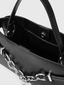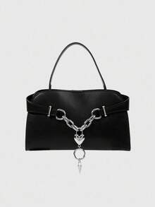 Grunge Punk حقيبة كتف للنساء مزينة بسلسلة ذات لون واحد