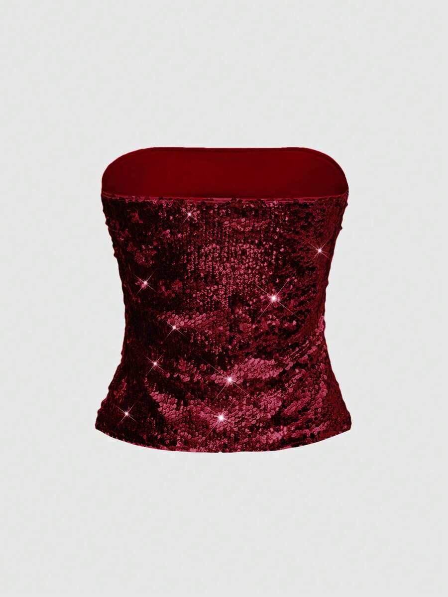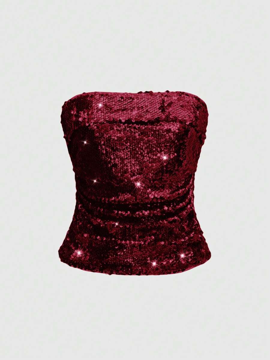 ROMWE Avant ملابس علوية نسائية بلون أحادي مزينة بالترتر والطيات ذات طراز أنيق