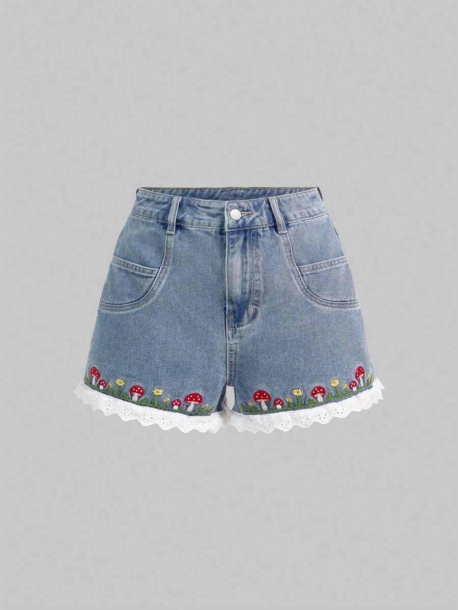 شورتات جينز نسائية جديدة للصيف، بلون أزرق فاتح مغسول، بتطريز زهري أمامي، شورتات جينز أنيقة ومريحة للسيدات