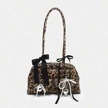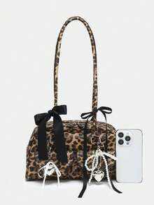 Goth Women's Vintage Cute Plaid Bowknot Pearl Chain Strap Decor Cherry Heart Accent Shoulder Underarm Tote Bag With Multi Pockets, Boston Style
