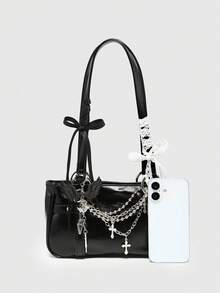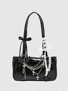 Goth حقيبة كتف نسائية ذات تفاصيل سلسلة صليبية بطراز جوتيك قديم، تصميم فريد للموضة، ستيمبانك، حقيبة جوثية للنساء، ملابس شارع رائعة، مثالية لمهرجان الموسيقى والحفلات والأسلوب الصخري، حقيبة للنساء للمدرسة والموضة في عام 2000، حقيبة مثالية لحفلات الهالوين والموضة الجوثية، أفضل هدايا الهالوين للنساء