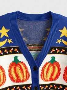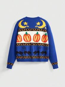 Fairycore كارديجان نسائي ذو رقبة على شكل حرف V مطرز بالقطط السوداء والقمر والنجوم والقرع في طراز عتيق لعيد الهالوين