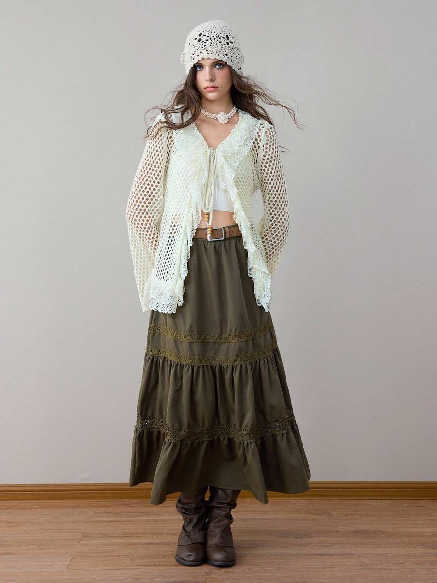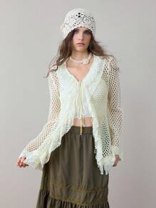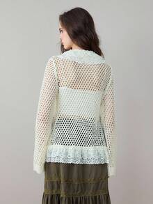 ROMWE Avant كارديجان شفاف بأكمام واسعة مزين بالدانتيل والرقعات بطراز موري كي وكوتيج كور، بتصميم مناسب للعطلات