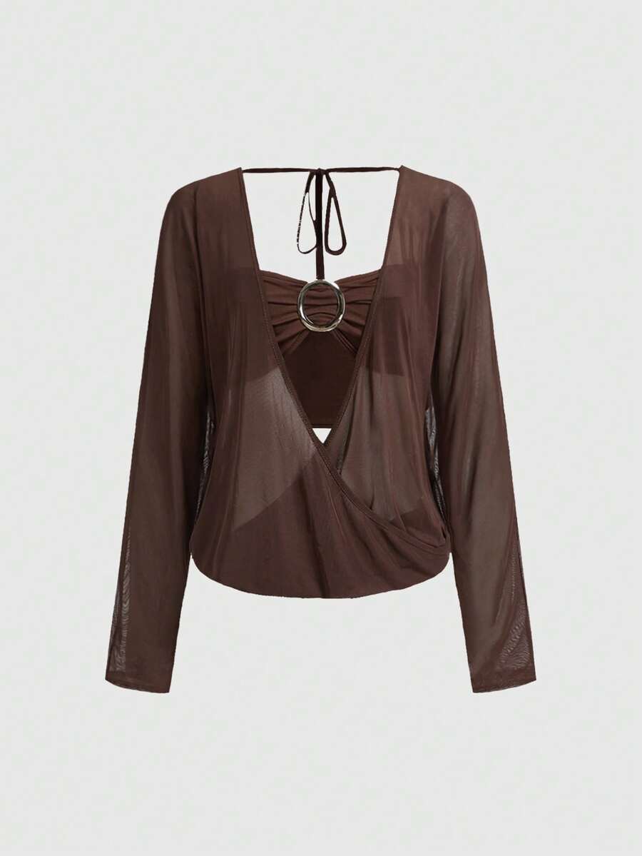 Hippie ملابس علوية نسائية ذات فتحة رقبة عميقة على الظهر بتصميم فضفاض وعتيق، ملابس علوية هالتر للشارع (مع توب كامي مضمن)