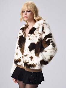 J-Fashion معطف هوديي نسائي بتصميم ريترو Y2K مع تباين الألوان وتفاصيل من الفرو الاصطناعي