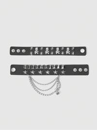 Grunge Punk 2 سوار جلد PU بنمط النيزك والنيازك الأنيق للرجال والنساء ذو طراز بانك، إكسسوارات البوهيمي والغوثي والروك الداكن، سلسلة الحب