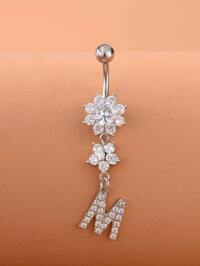 Nooxian سرة الحلق مصنوعة من الفولاذ المقاوم للصدأ مرصعة بالراين ستون على شكل زهرة للنساء والرجال، تصميم بانك للثقب، مجوهرات جسمية كهدايا أنيقة لأي مناسبة مثل عيد الحب أو عيد الأم