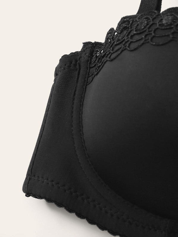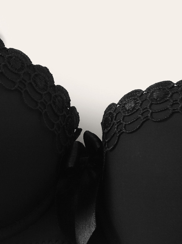 حمالة صدر سوداء بسيطة من القماش مع تفاصيل من الدانتيل والفيونكة ذات إطالة طفيفة للنساء