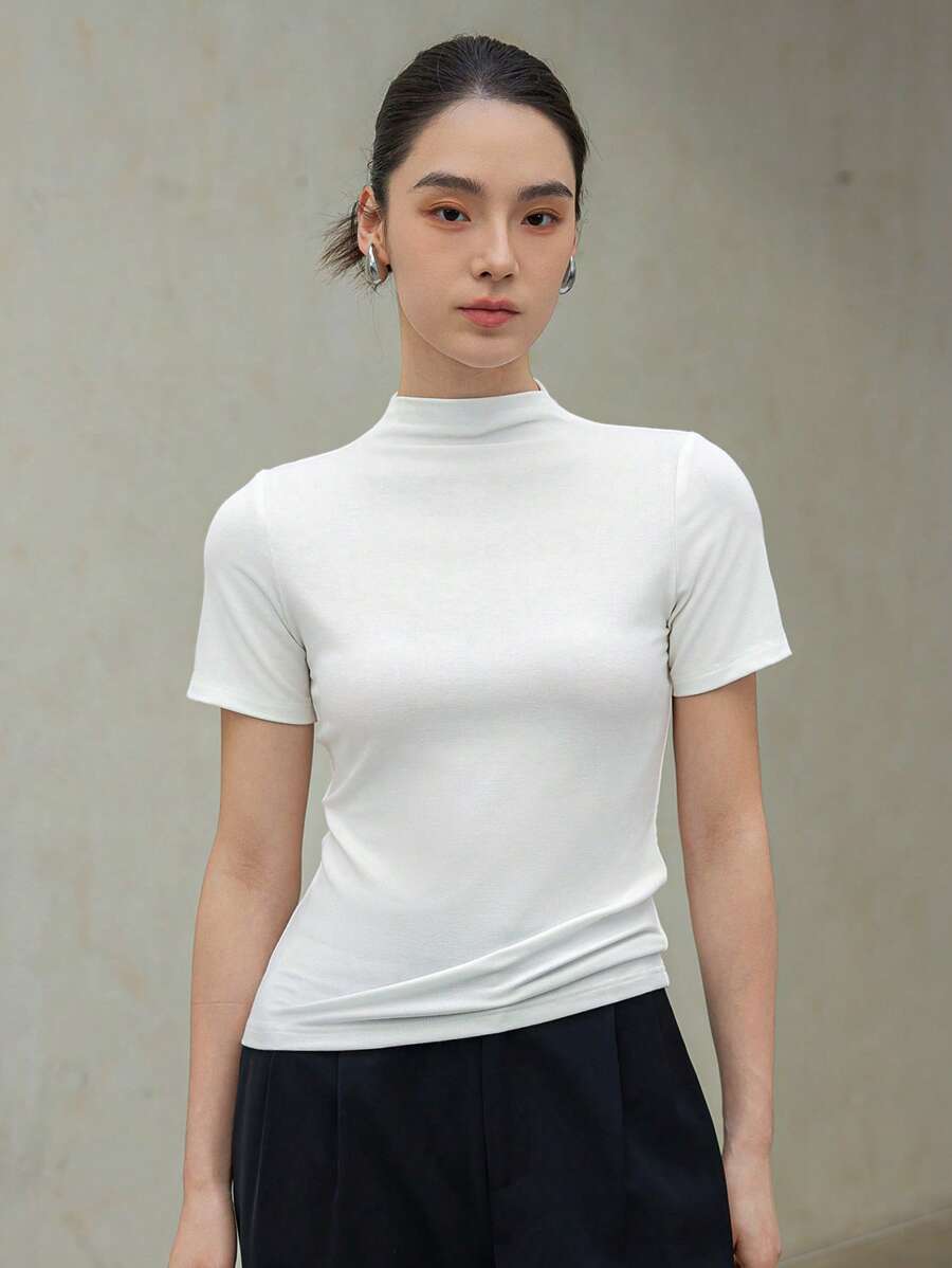 بلوزة نسائية ضيقة عديمة الياقة باللون الأحادي بأكمام قصيرة، بلوزة كاجوال للسيدات