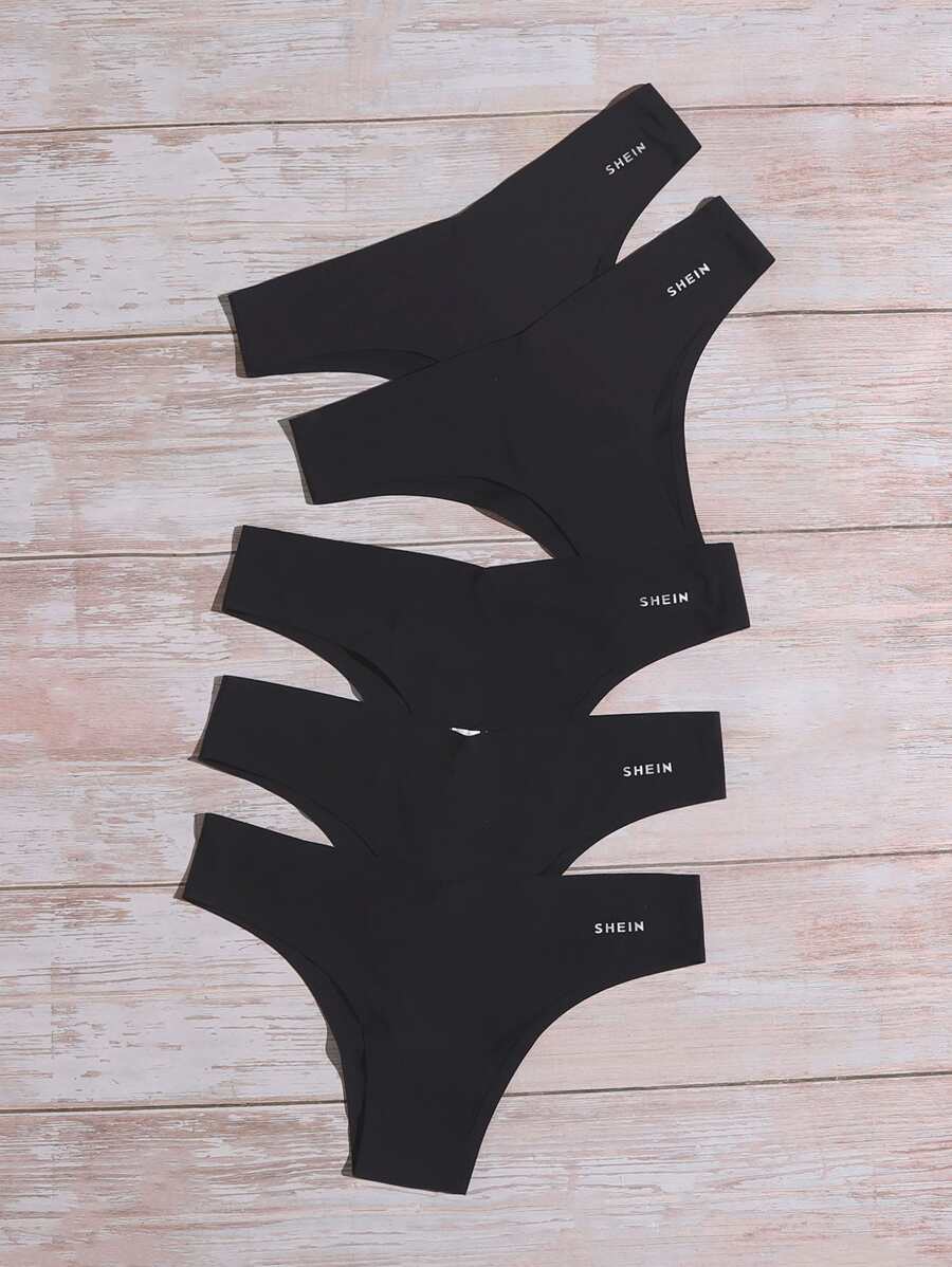 5 حزمة سراويل داخلية نسائية سوداء كاجوال مطاطية عالية الإطالة