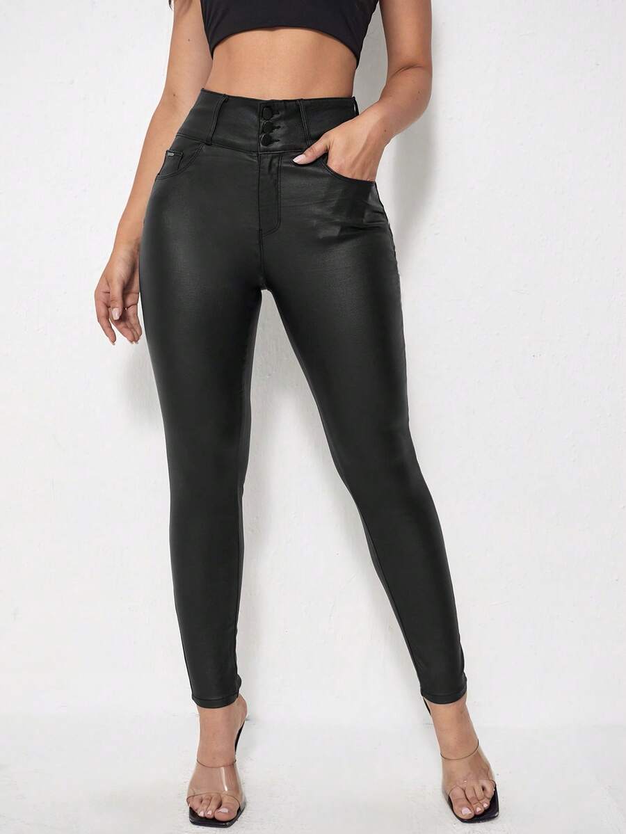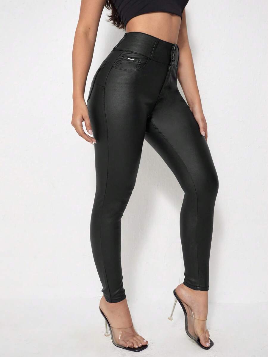 بنطلون نسائي بخصر عالي وجيوب، بفتة جسم بسيطة