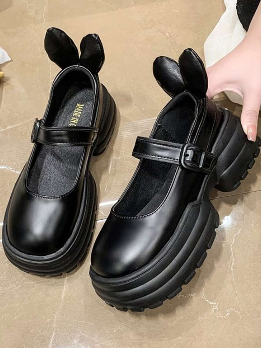 حذاء مبسط ماري جين كلية أسود نعل سميك نساء