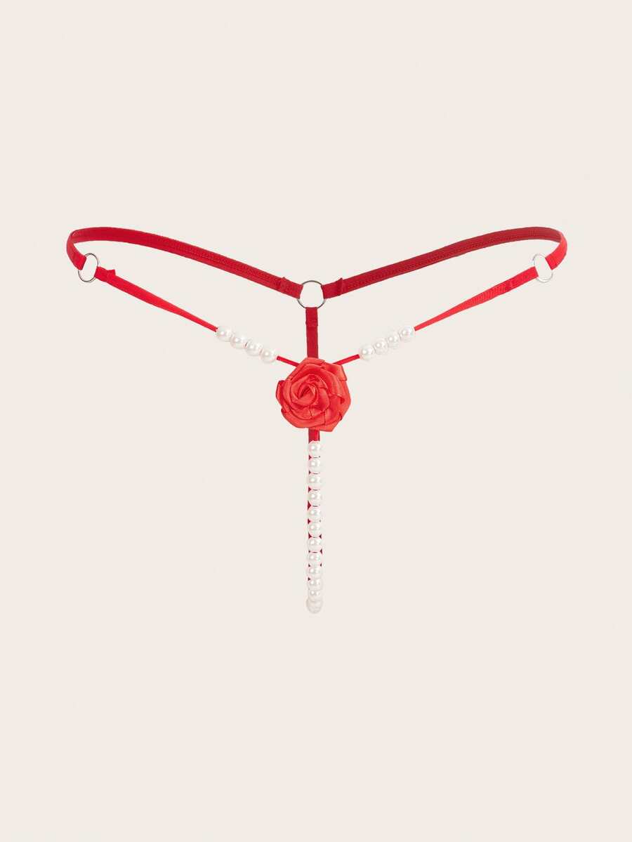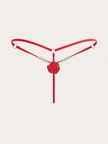 سروال داخلي ثونغ مزخرف بلؤلؤ اصطناعي
