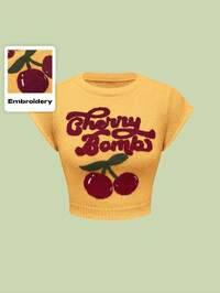Kawaii كنزة صوفية صوفية نسائية بياقة دائرية وأكمام خفافيش، مطرزة بالكرز، بطراز كولومبيا الحلو والبريء