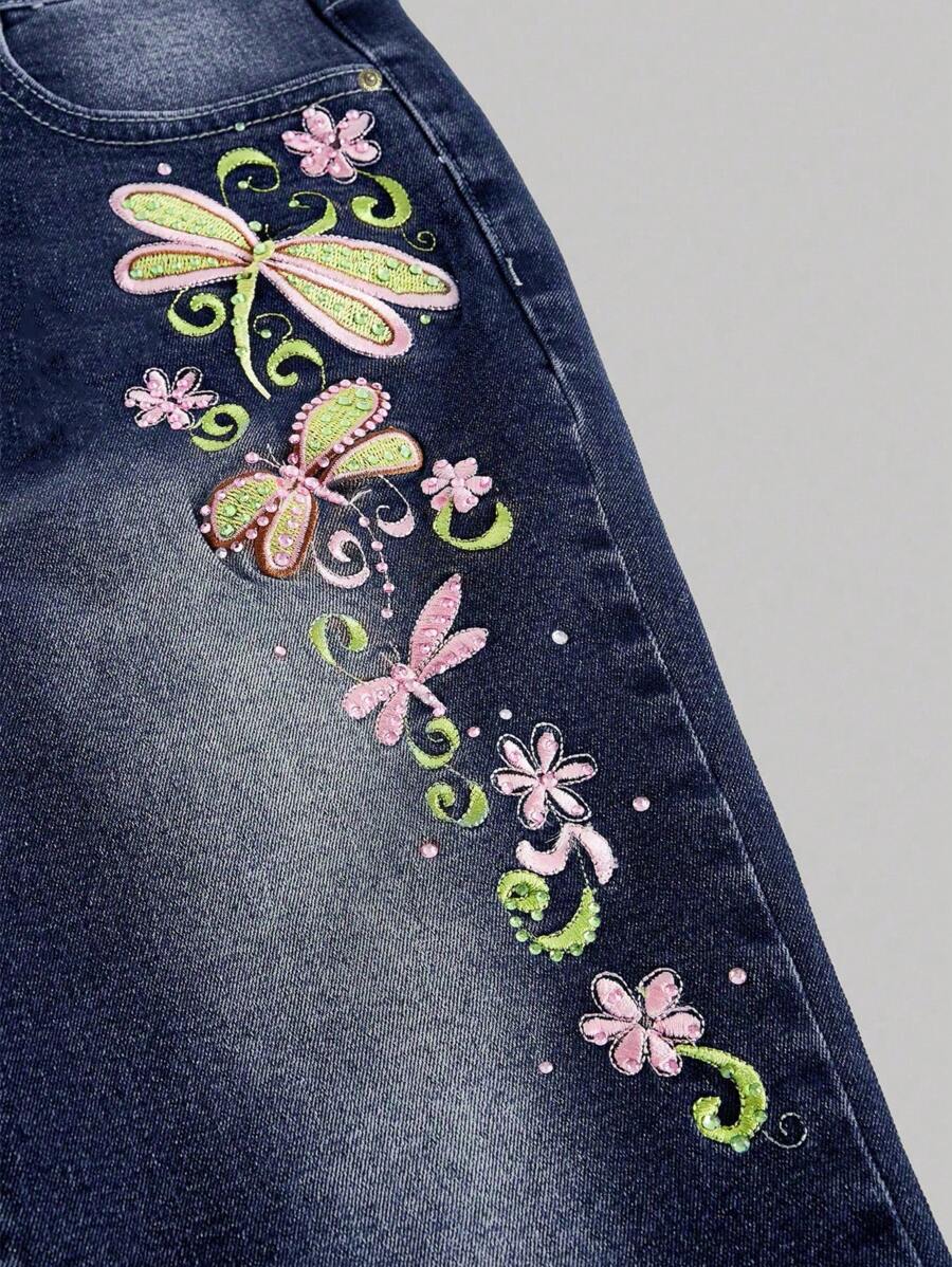 Fairycore سراويل كابري بخصر منخفض جدًا مطرزة بالنحلة الرجعية لصيف المرأة ذات الحجم الكبير