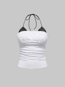 ملابس علوية نسائية قطعتين مع تطريز دانتيل وكشكشة في الرقبة