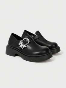 Goth أحذية سيدات مار جين بلون أسود ،حذاء لوفر بحزام وإبزيم معدني ، أحذية برقبة على طراز بانك/جوث برباط سميك