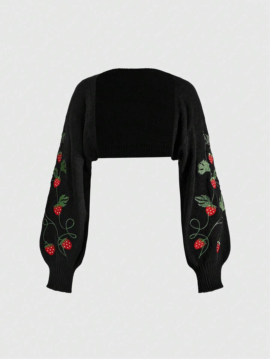 كارديجان مطرز بنمط كرمة الفراولة للنساء