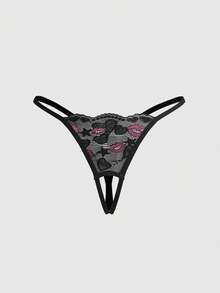 Goth سروال داخلي نسائي جوتيك مثير بطبعات الشفاه والزهور بدون سرة