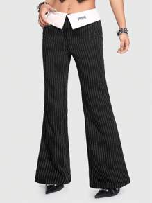 سروال نسائي ذو خصر مرتفع وخطوط مجدولة