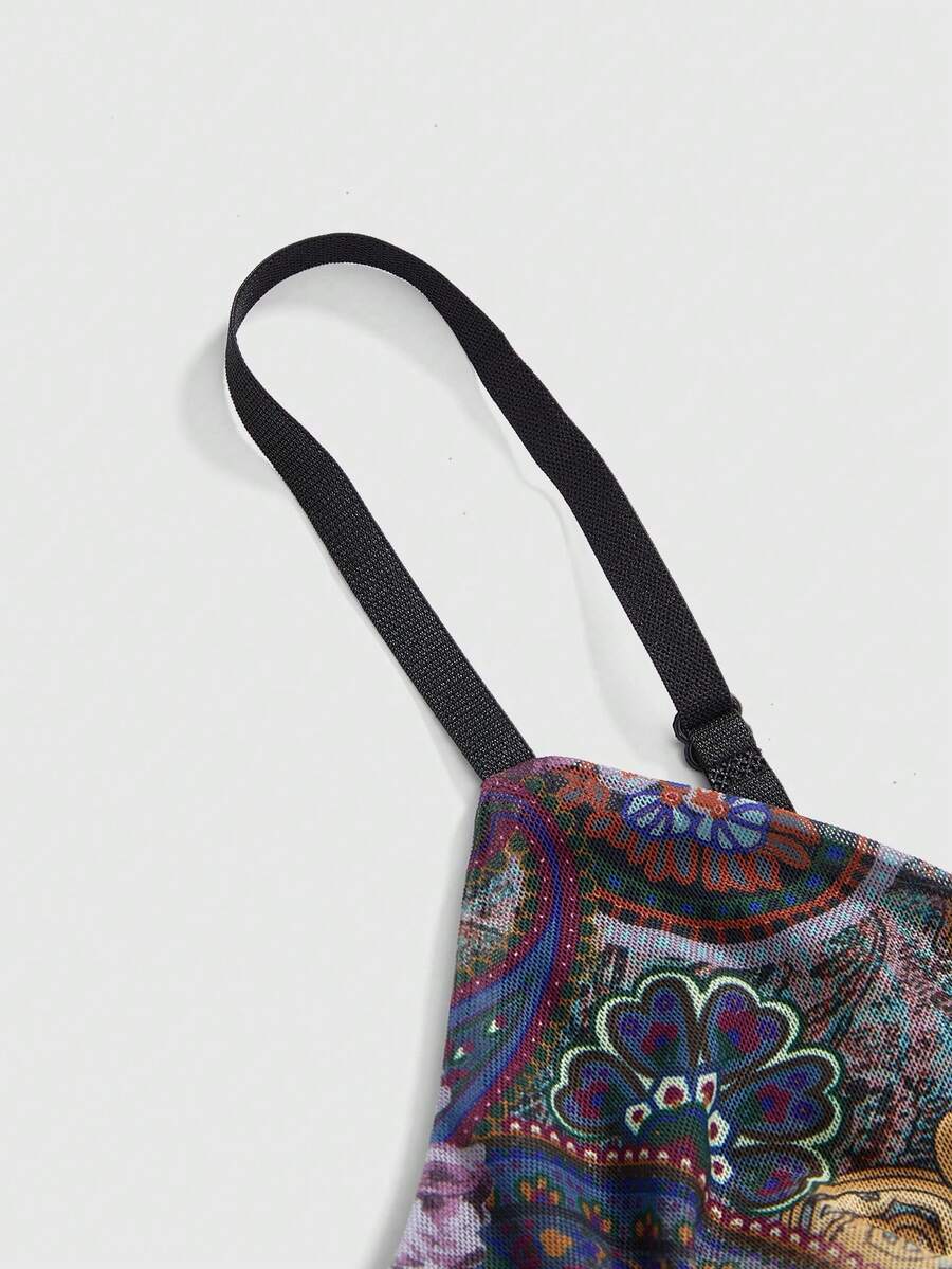 Hippie فستان مصغر أكمام بدون أكمام بطبعة بايزلي نمط هيبي رجعي للسيدات