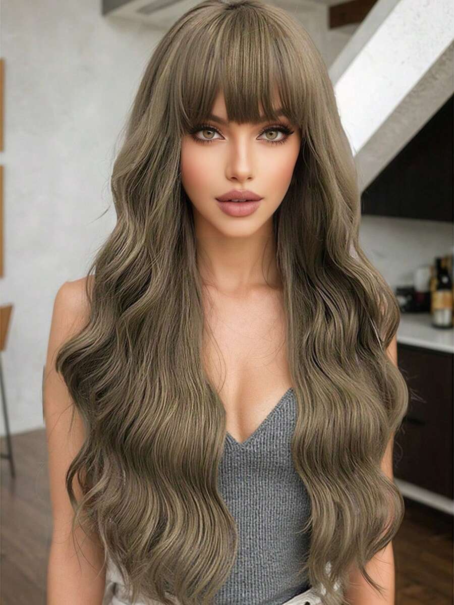 شعر مستعار طويل مجعد مع شعر ناصية باروكة