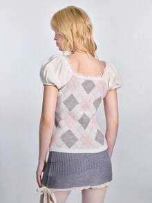 ROMWE Avant كنزة صوفية كنزة ضيقة مزينة بنقشة ماسية وخرز للنساء بطراز Y2K