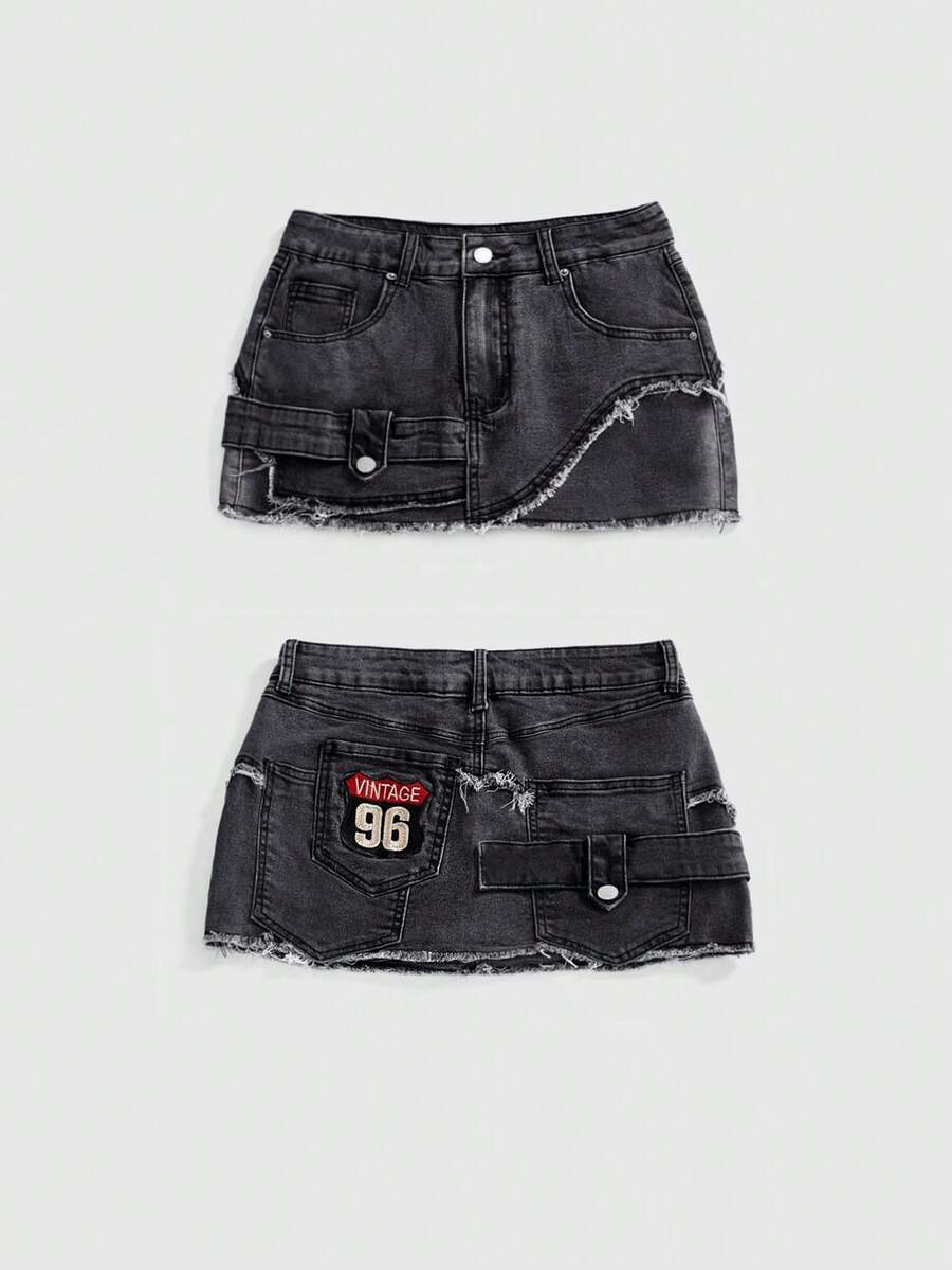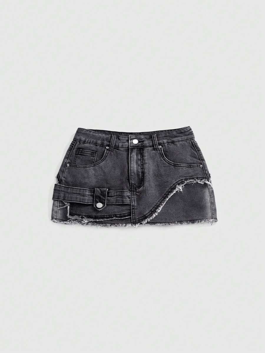 Y2K تنورة جينز قصيرة مشوهة غير متماثلة وجذابة للنساء