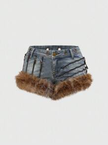 Grunge Punk شورت جينز مثلث قصير ذو خصر منخفض للغاية، ديكور معدني، ثقافة فرعية Y2K جذابة