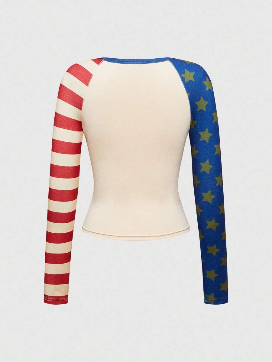 ROMWE Avant قميص نسائي بطبعة علم أمريكا وأحمر شفاه بطراز الشارع الأمريكي الرجعي Y2K