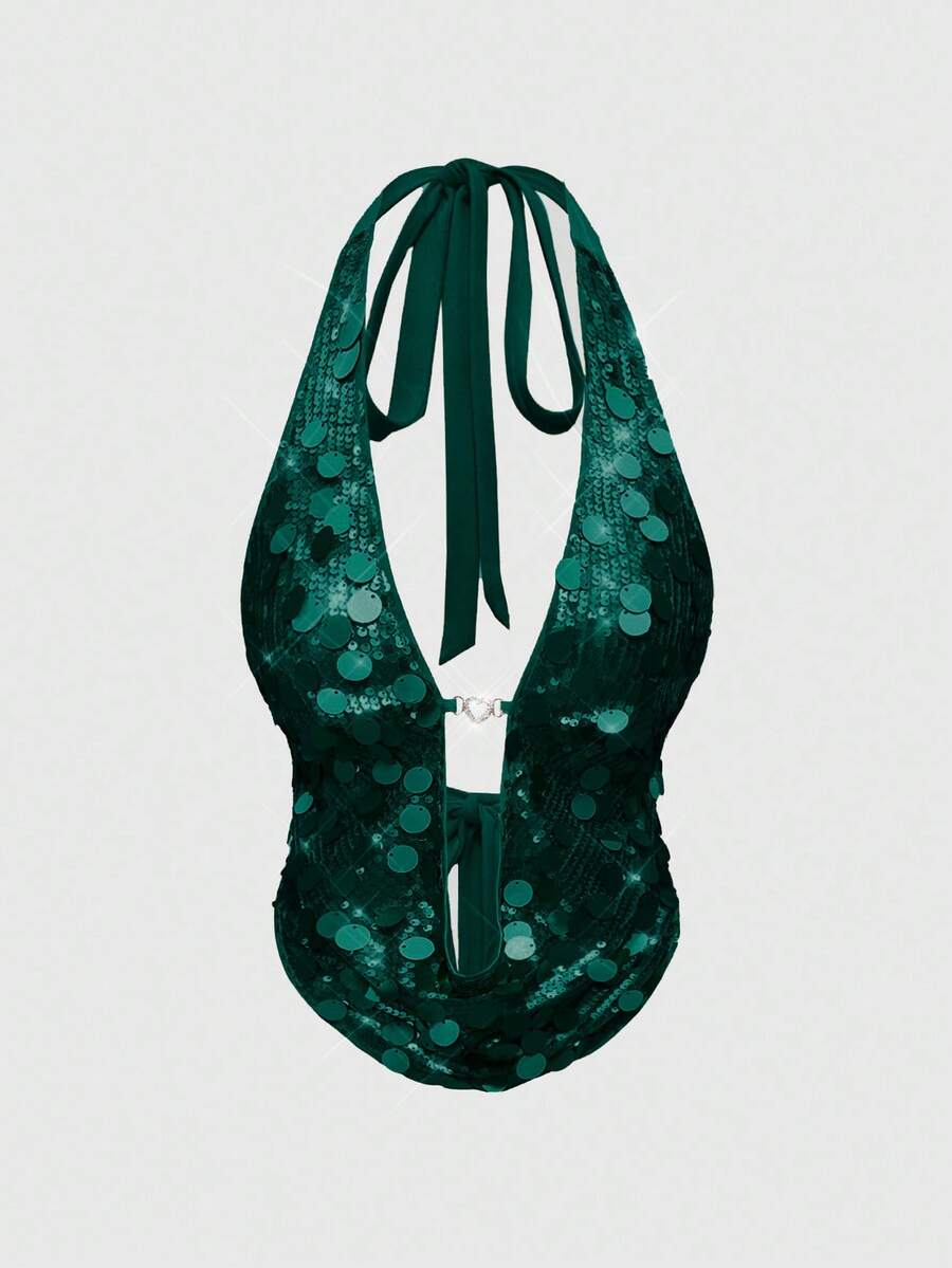 توب قصير مزين بالخرز ذو رقبة متدلية للنساء بطراز Y2K الرجعي الجذاب