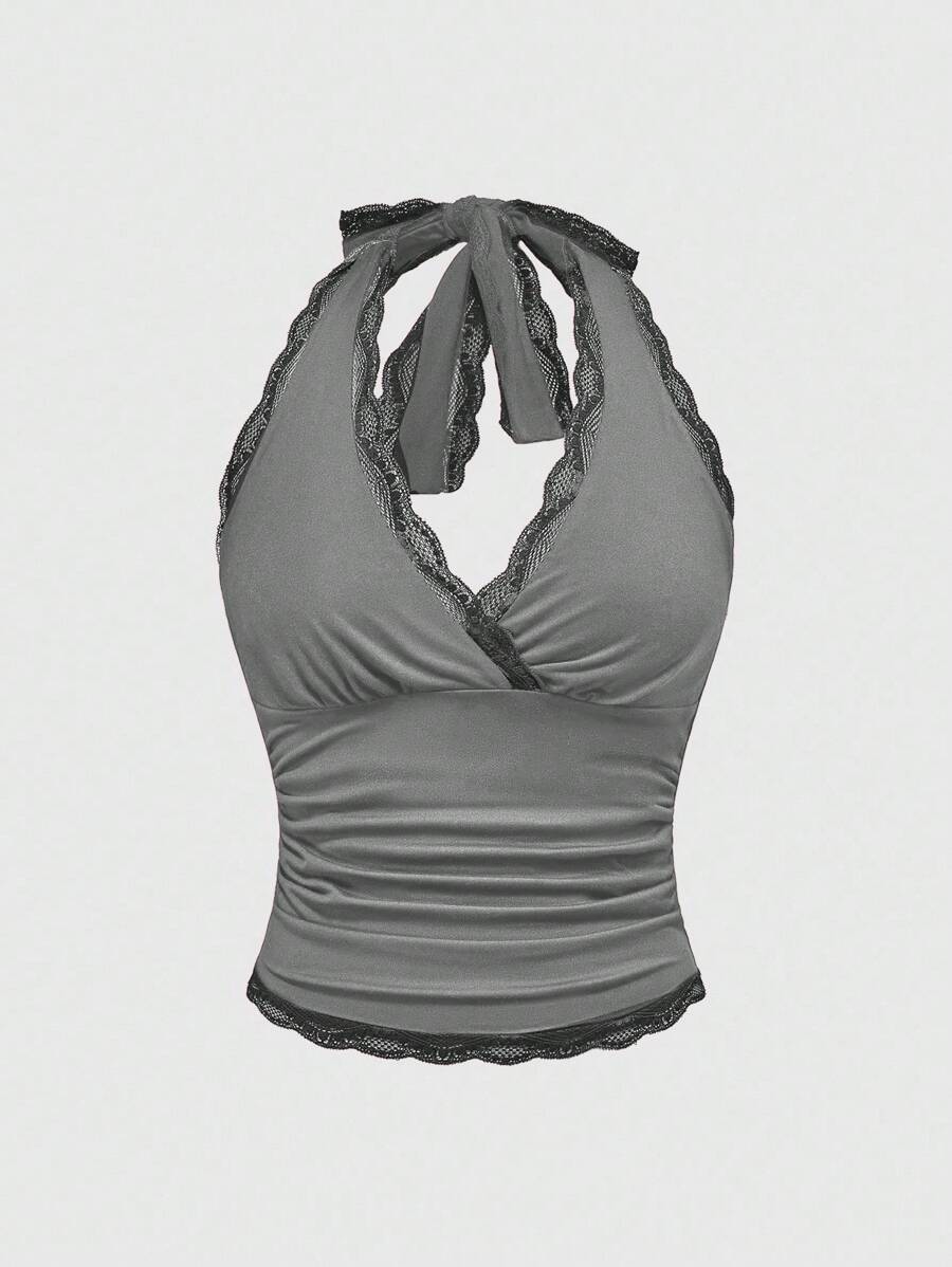 Grunge Punk توب كامي بياقة حلقة مكشكش بلون أحادي للنساء بطراز Y2K