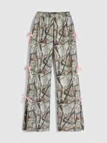 سروال رياضي فضفاض بطبعة أغصان كامولفلاج وربطة عقدة الخصر للنساء على طراز Y2K، ملابس صيفية