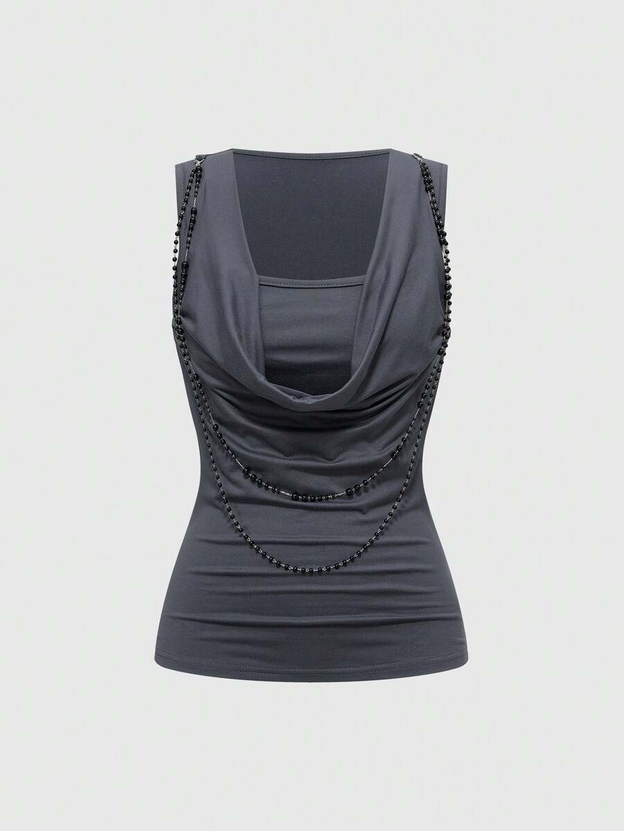 Grunge Punk ملابس علوية أنثوي بتصميم عنق منسدل مزين بالخرز، طراز عصري من عام 2000