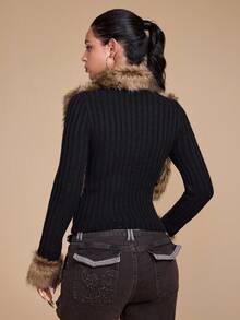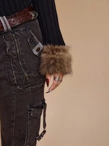 Grunge Punk جاكيت مبطنة بفرو اصطناعي بتصميم رجعي من عصر الألفية الجديدة