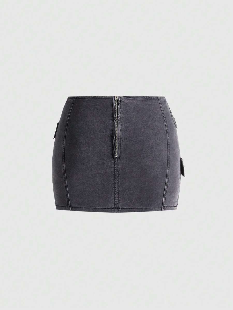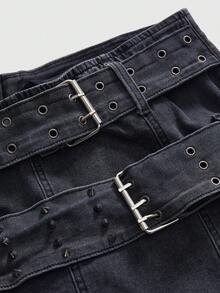 Grunge Punk تنورة جينز قصيرة مزينة بالنيتات والحلقات المعدنية بطراز بانك فينتاج ميتال ثقيل، مقاس كبير