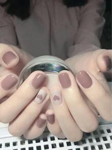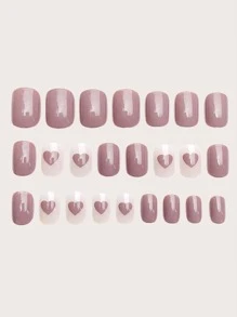 YTJ أظافر مزيفة قابلة للارتداء بتصميم قلب خوخي قصير، فن الأظافر بمادة لاصقة حلوى الأظافر ومبراة الأظافر، مستلزمات الأظافر