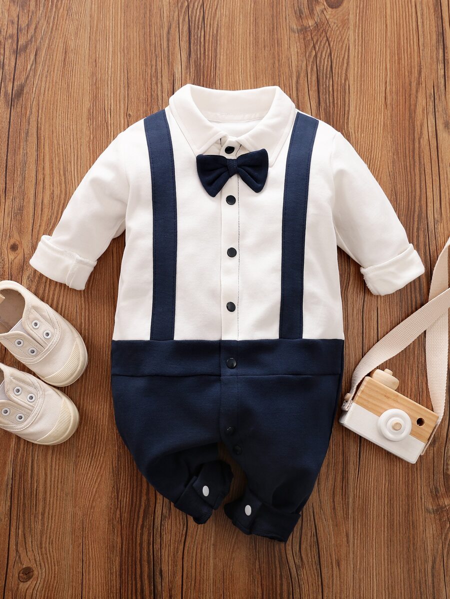 Yierying جمبسوت بالوان متجانس بتفاصيل ازرار امامي بربطة قوس للاولاد ارضع