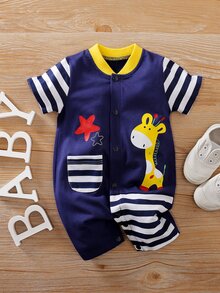 Yierying رومبير بجرافيك مخطط ورسوم كارتون مدرز بجيب وبازرار امامي للاولاد الرضع