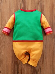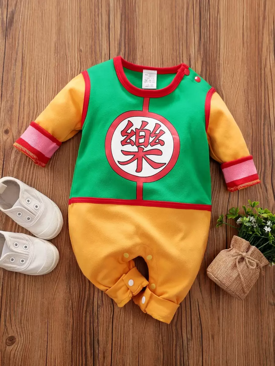 Yierying جمبسوت بألوان متجانس وبجرافيك عبارة صيني للاولاد الرضع