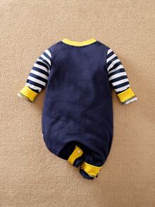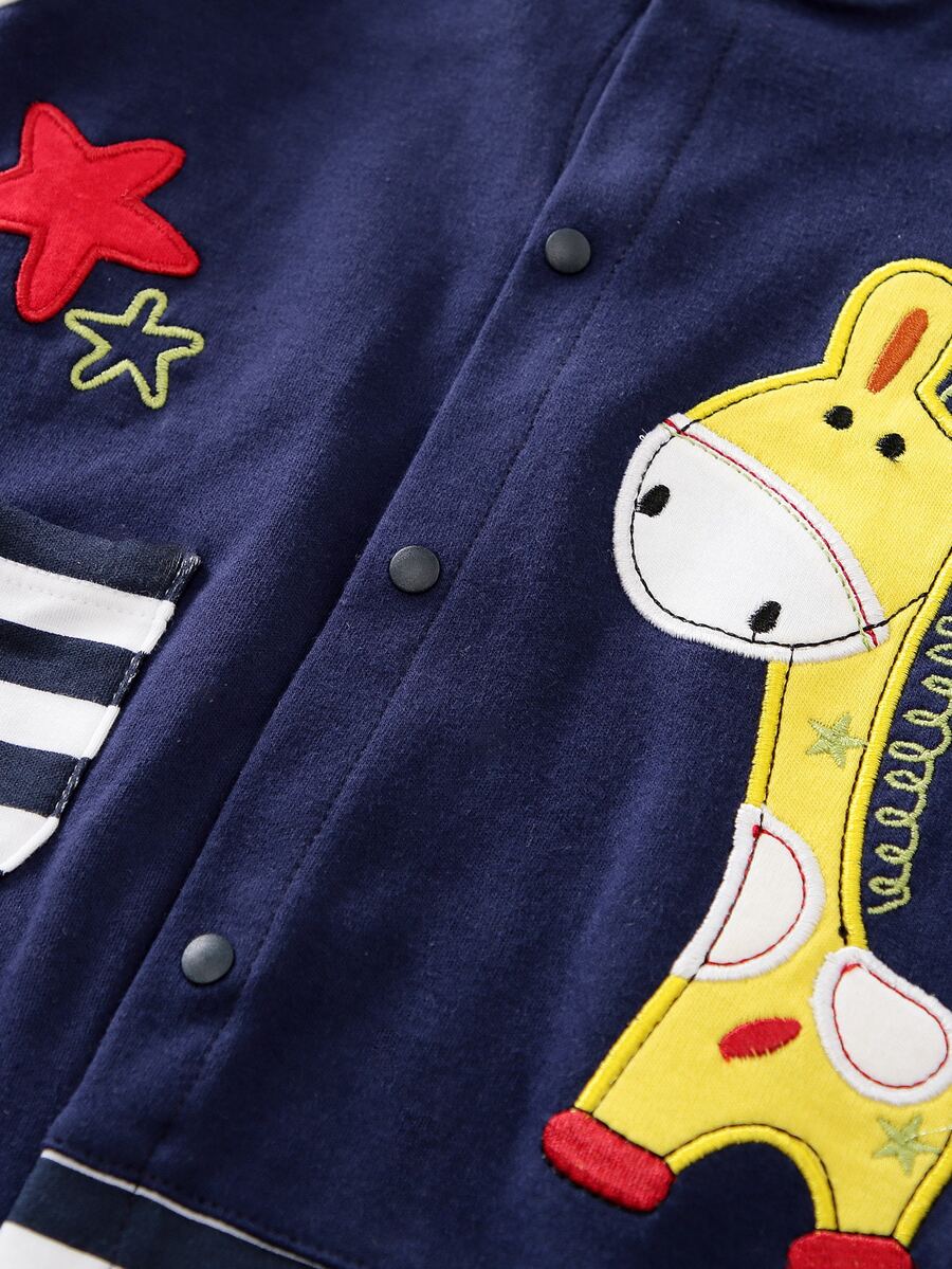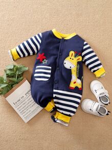 Yierying جمبسوت مطرز بزرافة كارتون مخطط للاولاد الرضع