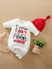 Yierying جمبسوت بجرافيك شعار مع قبعة للجنسين الرضع