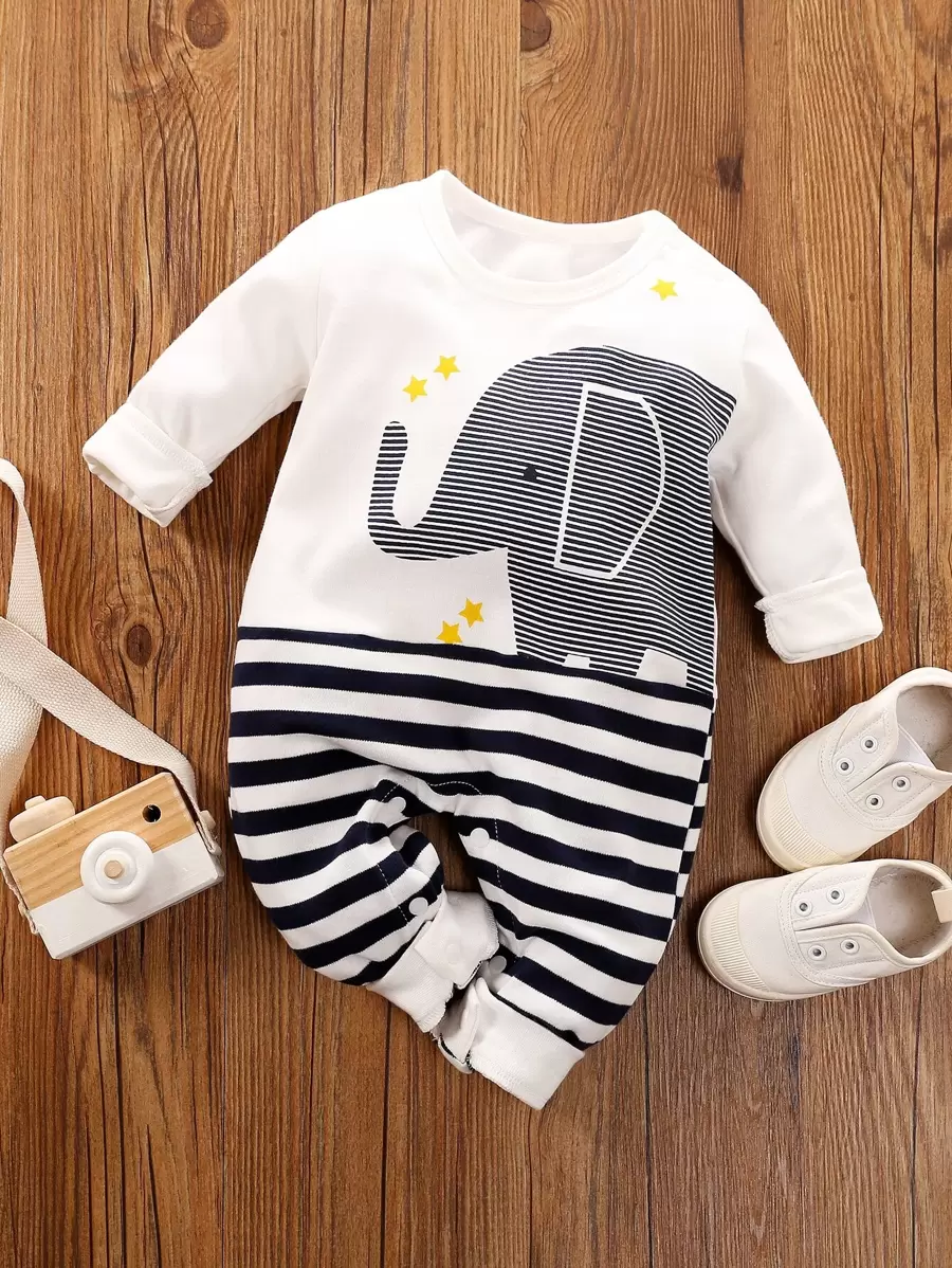 Yierying جمبسوت بجرافيك رسوم كارتون مخطط للجنسين الرضع