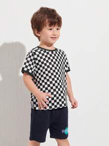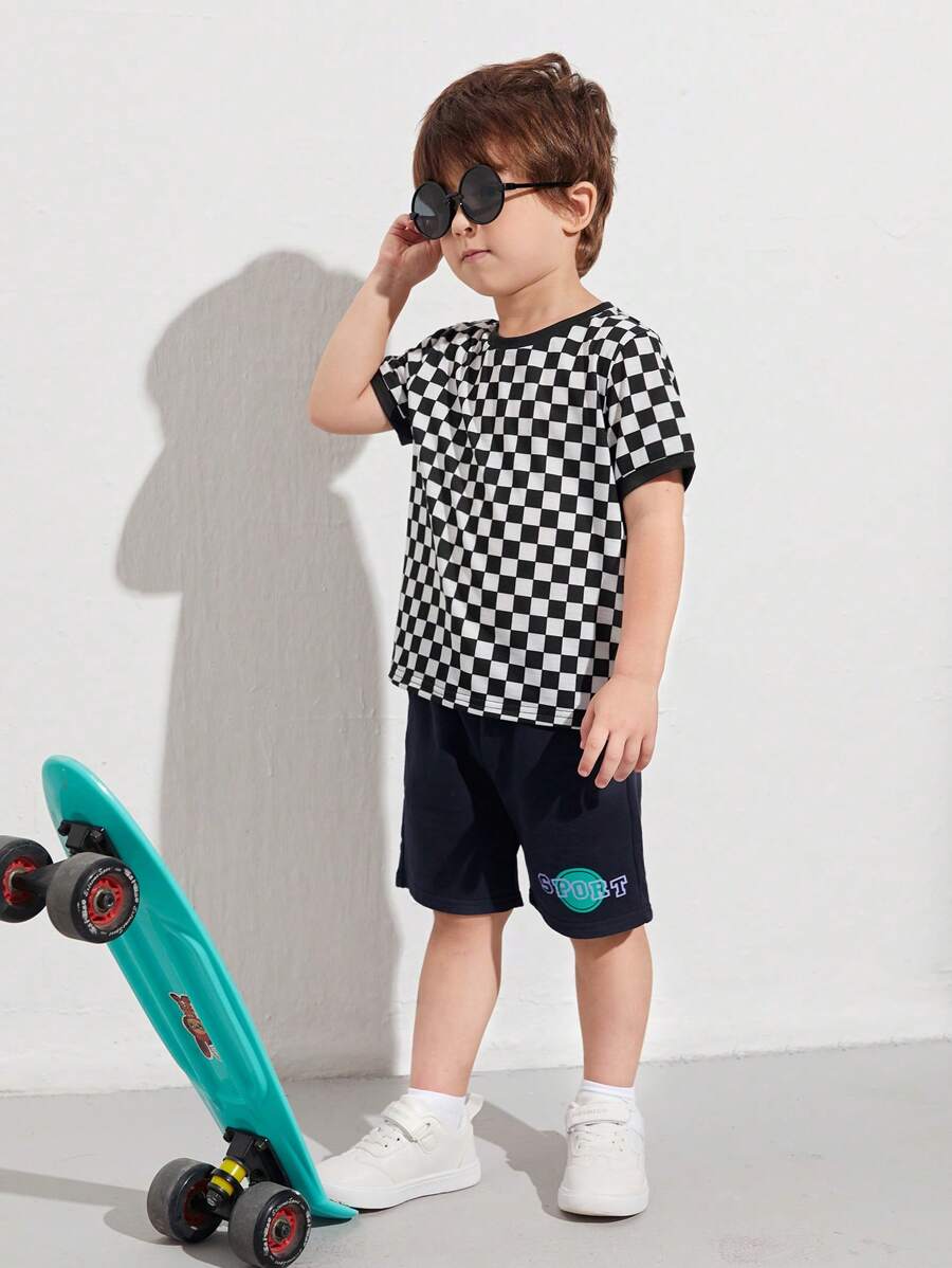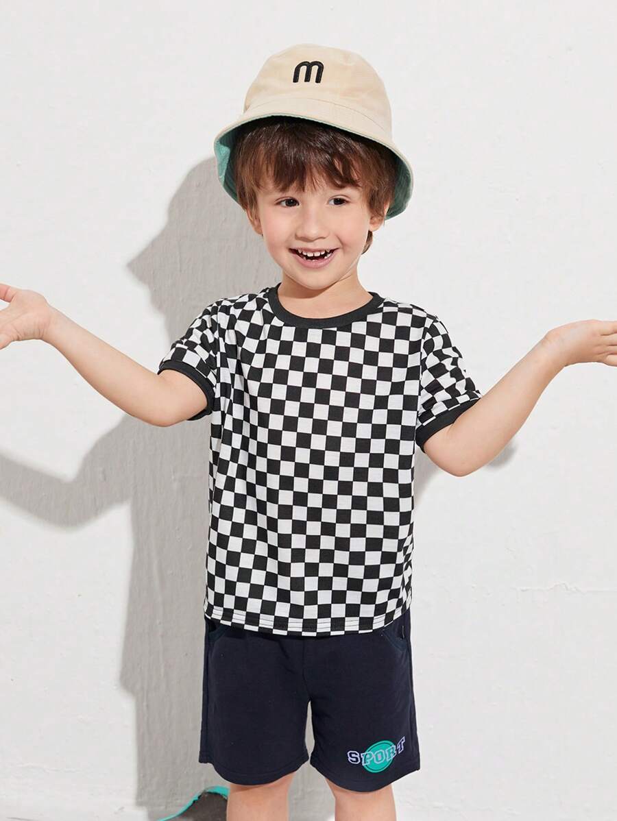 تيشيرت صغير للولد مطبوع عليه نقشة المربعات