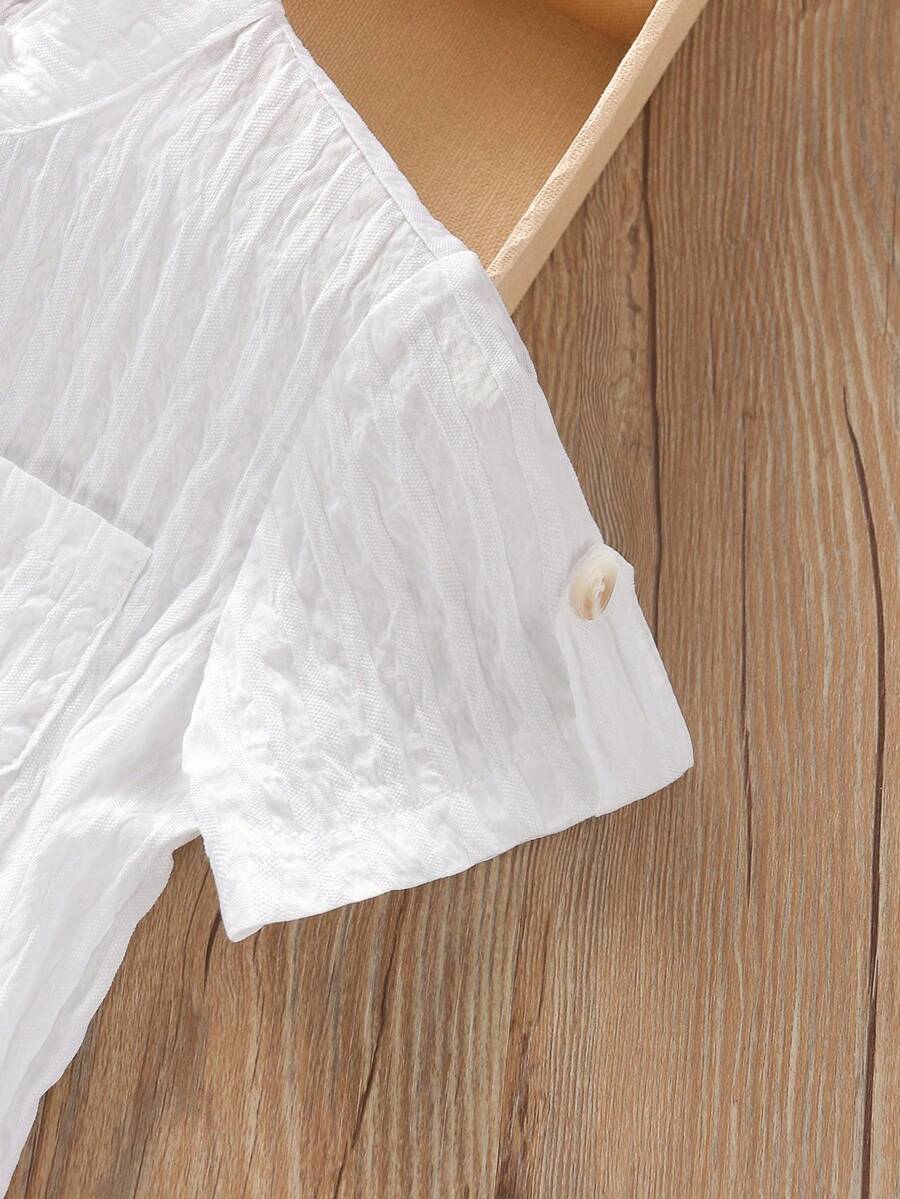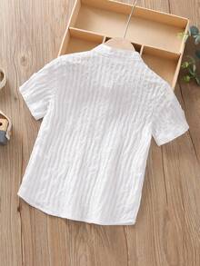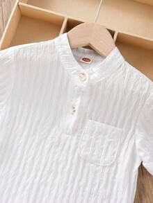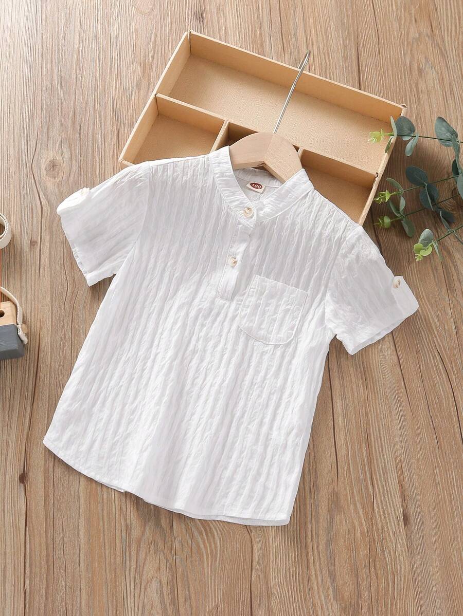 قميص شبابي بنصف أزرار وتماسك أكمام مزيف