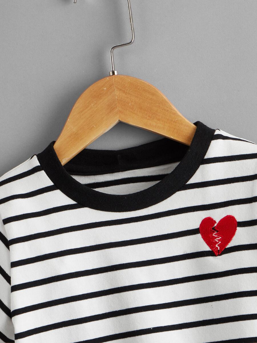 قميص مخطط بتطريز قلبيات للأولاد الصغار